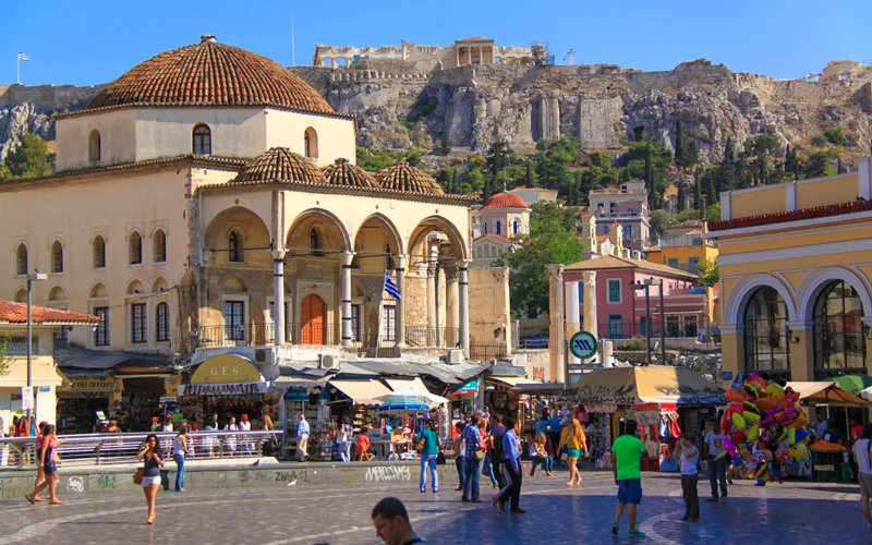 Monastiraki, Antik Yunan Agorası’nın kuzeyinde bulunan Atina’nın en renkli bölgelerinden. Sokakları hediyelik eşya dükkanları, kafe ve barlarla dolu olan Monastiraki’de aradığınız her şeyi bulabileceğiniz bitpazarı var. Abyssinia Meydanı’nı merkez alarak pazar günleri kurulan bu pazarda, antikalar, eski kıyafetler, gümüş, bakır eşya ve objeler bulunuyor. Monastiraki Meydanı’nın güneyinde ise Osmanlı döneminde kalma Tzisdarakis Camisini gezebilirsiniz. Bölgeyi ikiye bölen şirin Ermou Sokağı, Ermou’nun kuzeyine doğru yürüdüğünüzde sağınızda kalan Psiri bölgesi ise, alışveriş dükkanları ve tavernalarıyla ünlü.